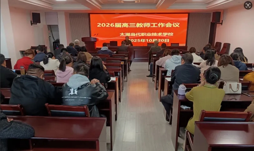 为凝聚教师团队合力,锚定高三教育教学核心目标,10月20日下午,太湖当代职业技术学校专题召开2026届高三教师工作会议。学校领导班子与全体高三教师齐聚一堂,共商备考策略,擘画冲刺蓝图。