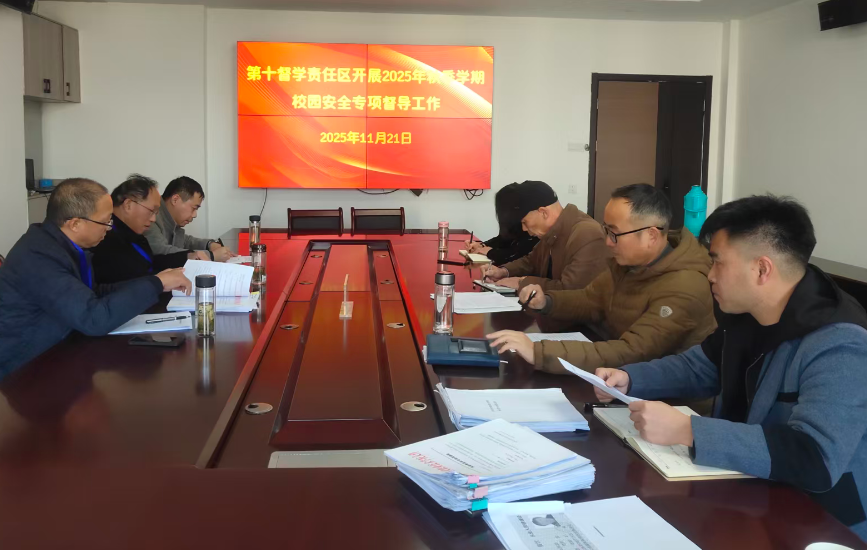 责任督学进校园,督导莅临促提升 ——第十督学责任区督学莅临太湖当代职业技术学校进行专项督导点击数:822025-11-22 来源:安徽太湖当代职业技术学校 为落实高中阶段秋季学期校园安全专项督导工作任务,11月21日下午,太湖县责任督学第十督学责任区督学徐远游、叶艳国、陈正国一行莅临太湖当代职业技术学校,围绕校园安全、消防安全、食堂食品安全等重点领域,开展了专项督导。学校领导及相关处室负责同志全程陪同,共同助力学校办学质量再提升。