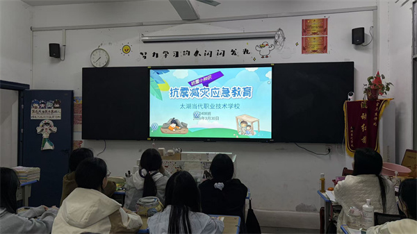 筑牢安全防线 守护师生平安 ——我校开展地震安全主题班会活动点击数:82026-04-02 来源:安徽太湖当代职业技术学校 为强化全校师生地震安全防范意识,提升应急避险和自救互救能力,筑牢校园安全防线,近日,我校精心组织开展了以“普及地震知识、掌握避险技能、守护生命安全”为主题的地震安全宣传教育活动,全体师生积极参与,取得良好教育效果。