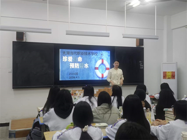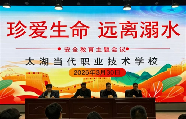 筑牢安全防线 守护青春成长——我校扎实开展防溺水安全主题教育系列活动点击数:82026-04-03 来源:安徽太湖当代职业技术学校 时至春末,夏季即将来临,气温攀升,溺水事故进入高发期,为切实加强校园安全管理,落实上级部门防溺水工作要求,全面提升学生防溺水安全意识和自救互救能力,近日,我校以“防溺水、保安全、护成长”为核心,分层召开班主任会议、班干会议、班级主题班会系列活动,层层压实责任,织密校园防溺水安全防护网。 (一)召开班主任专题会,压实主体责任 为精准传达上级防溺水工作指示精神,明确工作方向,我校首先召开防溺水工作班主任专题会议。会上,政教处负责人详细传达了上级部门关于防溺水工作的部署要求,强调了当前防溺水工作的紧迫性和重要性,明确要求全体班主任提高思想认识,将防溺水教育作为当前班级安全工作的重中之重。