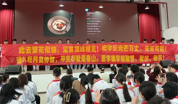 温情时刻,暖意涌动。高三学子与高一高二学弟学妹们开展互赠横幅祝福活动,承载着青春期许与真挚情谊的横幅,在学子们手中传递,不仅是一份祝福,更是一份传承,定格了彼此青春里最珍贵的回忆,让现场氛围愈发温馨。