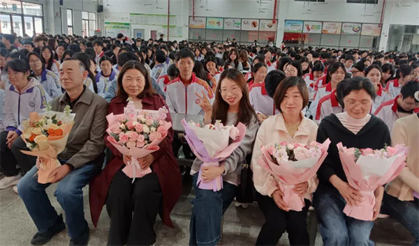 师恩难忘,薪火相传。两位高三老师代表先后上台发言,没有华丽的辞藻,唯有发自内心的叮嘱与祝福,字里行间满是对学子们的不舍与牵挂,更寄托着对大家未来的无限信心。随后,师生互相祝福、赠送鲜花,学子们以一束束鲜花,致敬老师们三年来的悉心教导与默默付出。