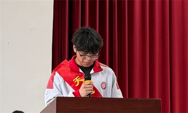 感恩环节,《感恩的心》轻柔响起,学生们纷纷向父母、老师表达感恩,现场氛围温馨感人。随后,副校长曹金明总结2026年高考辉煌成绩,展望2027年高考,鼓励全体师生凝心聚力、奋勇争先。高二学生代表齐晗菲、教师代表徐蕾先后发言,传递奋进力量。