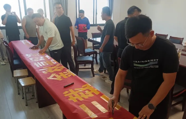 在轻松愉快的交流中,同学们纷纷分享了毕业13年来的成长轨迹。有人进入事业单位,工作稳定;有人勇敢创业,开拓事业新版图;也有人坚守专业领域,将所学发挥得淋漓尽致。多位同学已在上海、江苏、合肥等地安家落户,有的更是携家人共同赴会,孩子们的欢声笑语为这场重逢增添了更多温馨与感动。 笔墨寄情·横幅留念