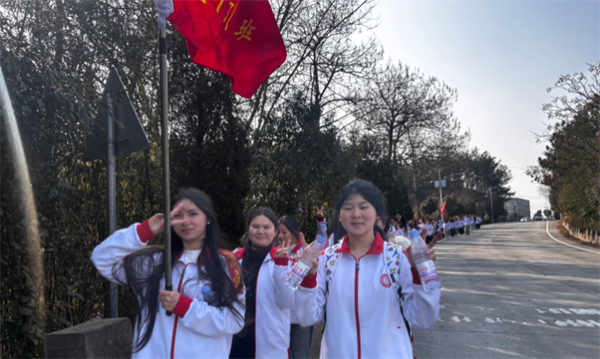 下午两点,全体高三学生身着统一校服,精神抖擞、身姿挺拔,在学校广场整齐列队。他们眼神中既有少年的朝气,更有直面挑战的坚定。简短而庄重的出发仪式上,副校长唐国强发表动员讲话,叮嘱学子们珍惜此次徒步契机,在行走中学会坚持,在陪伴中凝聚力量,将途中的坚韧与勇气,转化为备考路上的不竭动力;同时强调活动期间的安全纪律,希望大家文明出行、友爱互助,展现太湖当代学子的良好风貌。随着出发指令的下达,各班高举班旗,如一道道流动的青春火焰,有序开启了前往太湖南站的徒步征程。