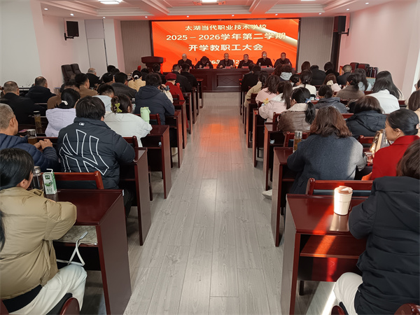 坚守育人初心 筑宽成才之路 ——太湖当代职业技术学校召开新学期开学工作会议点击数:512026-02-24 来源:安徽太湖当代职业技术学校